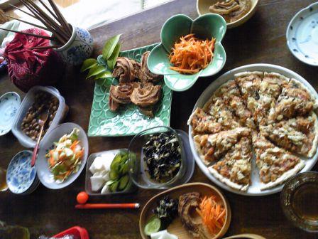 昨日は久しぶりに自然育児友の会の練馬板橋でのお茶会に参加してきました。育児休暇中は自由に参加できたのですが復職してからはだいぶ足が遠のいていてたぶん、1年以上ぶりくらいかしら・・・・今回はご自宅でマクロビオティックのお料理教室を開かれている会員さん宅にて各自1品持ち寄りのお茶会ランチ♪とっても開放的で落ち着く雰囲気の素敵なお宅でうっとり私は今回トラ豆をはちみつと塩であじつけした煮豆とぬか漬け持参。ランチはこんな感じでとっても幸せなひと時でしたあいにくのお天気だったせいで参加者は4組とこじんまりでしたが素敵な空間でおいしいものをたくさん堪能していろいろなおしゃべりを楽しみました。予防接種や離乳食、お料理の話などなど。今回めずらしく保育園をお休みして連れて行った次男君。長男が就学してからどうも長男に手がかかり次男は後回しになりがちでなかなかゆっくり話も聞いてやれないので「一緒に行く?」と誘ったら「行く!」と嬉しそうにしてたので、ついつい。でも、案の定…後半、ちょっと退屈してくると走り回ったり私にからんできたりで落ち着きませんでしたやっぱり「たまには」なんて連れて行くと本人的にはリズムが乱れて落ち着かなくなるんですよね~。彼にとっては知らない大人たちの中、はじめていくお宅で一緒に遊べるお友達もいず母はおしゃべりに夢中、では面白くないのは当然ですよね。帰宅後、どっと疲れたのか次男君は夕食も食べずに6時前には眠りにつきました…連れ回してごめんよ~。今度は単身で出かけよう、と密かに思った母でした