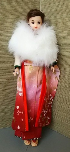 着物にファーが定番!!って事で 改良したファー作成しました!抑えた ボリューム感は・・伝わらないね(笑)草履は まだ・・悪戦苦闘!履かせる事が出来なくて・・上に乗せてるだけ・・まだまだです・・いい材料ないかなぁ