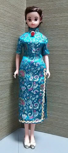 以前から 作りたかった チャイナドレス!市販されてたのは リカちゃん用・・型紙をジェニーちゃんサイズに変更しウエストをつめて同封されてた布 ギリギリ使って ちょっとすそ短いですが・・作ってみました~ちひろは 着こなしてくれます~