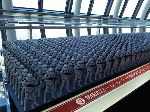 また挑戦!予約なんで 確実ですけど~回廊 行って来ました!!!トルーパー 迎えてくれました~外眺めるより トルーパーに釘づけ!はい 回廊壁に 釘付け!この日はとても天気よくて あたたかくて眺め良かったんですけどね~ 富士山はガスってて 見れませんでしたけど来れて 満足!
