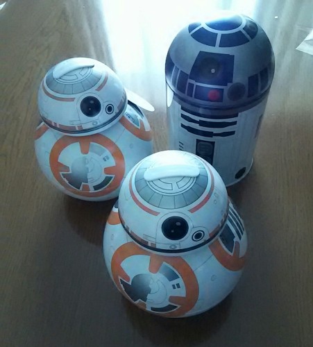 もう棚には 並んでませんけど~去年と同じ トルーパーホワイトチョコもありましたが今年はこれでしょ!!深夜清掃の時に 発見してこれは朝一で来て 購入しなければ~~!!で 2個買ってしまいました~もうその日で BBー8は 完売!R2D2も次の日くらには 完売!その棚には 今は BB-8のクッションが並んでおりますバレンタインフェアなのに チョコじゃないものが陳列・・補充までの間でもそれは どうかな?