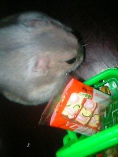 昨日はニコ様クッキーと出会い、何かを企んでいたランちゃんのその後です。ラン 「・・・ひそひそひそ・・・。」 何やら内緒話をしているようですね。ラン 「わかったでしゅ!ちょっと待つでしゅよ。」 おや?何か準備をするようです。ラン 「コンビニで買ってきたでしゅよ!こんなんでいいでしゅか?」 ランちゃんお酒なんて!まだ未成年でしょ!ラン 「何のことでしゅか?僕はかぼ種をたべてましゅよ! それにハムは3ヶ月でもう大人なんでしゅ! お酒だって飲んでいいんでしゅ!」 (-_-;)う~ん、そう言われるとそうなんだけど・・・。ラン 「あ、しまったでしゅ!こぼしたでしゅ!ティッシュ、ティッシュ!」 飲む前からすでに酔っ払ってますね(-_-;)ラン 「さぁ!ニコ様、ティッシュも用意したでしゅよ!どうぞ飲むでしゅよ!」 って、おい!お酒もおつまみも増えてますけど(-_-;)ラン 「あははでしゅ~!いい気分でしゅね~!ニコ様!」 だからそれはクッキーです(-_-;)あ~あ、一人で飲んじゃって・・・。ラン 「いい気分だからも~寝るでしゅよ!ニコ様おやすみでしゅ~。」 ニコ様クッキーをダシにして酒乱のランちゃんが出来上がったのでした・・・(-_-;)