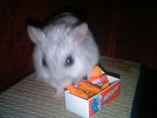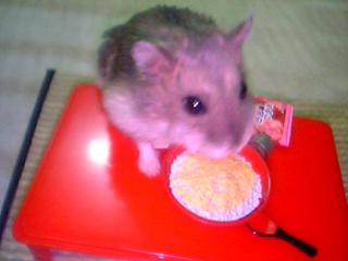 先日、ラン、ナン、フウが長男と三男のお祝いの準備をしたその後キッチンに現れたのは、我が家のおっとり、のっそり、もっさりNo.1のルナ殿様でございました。ルナ 「ん~、フライドチキンはおいしいでしゅ~。」ルナ 「ん~~。シチューがあるでしゅね~。おいしいでしゅね~。」ルナ 「ん~~~。こっちはピザでしゅね~。食べるでしゅ~。」ルナ 「ん~~。こっちにもおいしそうなのがありましゅね~。 ん~~~。おいしいでしゅね~。」ルナ 「ん~~~。のどが乾いたでしゅね~。お茶~~~。」ルナ 「ん~~~。全部味見したので帰りましゅね~~。」あ、ルナ殿そこは階段がないんだよ!ヒュ~~~ンドサッルナ 「ん~~~。誰かおちたでしゅね~~~。」(´ω`;)いや・・・落ちたのは君ですよルナ殿様上手い具合にコメコメポップの入った缶の中に転落。ルナ 「ん~~~。ここはお家じゃないような気がするでしゅね~~~。」・・・よく気がついたね。誉めてあげるよ(´-д-`) ルナ 「ん~~~。」あれ?(・ω・)ルナ 「ん~~~~。」おい!ちょっとルナ(´・ω・`;) ルナ 「ん~~~~~。」うぉぉぉ~い!!!沈んでいってるってばΣ(`・ω・屮)屮気がつけばそこにはルナの姿はなし慌てて救出ルナ!大丈夫か???ルナ 「ん~~~~~~?ボ~リ、ボ~リ、ボ~リ。」ルナ殿様頬袋にたんまりとコメコメポップを詰め込んで食べながらでてきました。ルナ!てめっ!!!ヾ(`Д´*)ノ゙ 我が家のおっとり、のっそり、もっさりルナ殿様は次男によく似ている(´~`;)