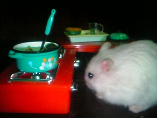 キッチンから何やら楽しげな鼻歌が聞こえてきましたよ。サン 「ふんふふんふふん~でしゅ。」おや?サンちゃんお料理ですね。何を作っているのかな?サン 「火加減を弱くするでしゅ。」サン 「材料はこれでしゅよ!何だかわかりましゅか?」かぼちゃのひま種煮ですねサン 「よし!できたでしゅね!火をとめるでしゅ!」おいしそうにできたねサン 「味見をしゅるでしゅよ!」お味はどうですか?サン 「かぼちゃが無ければもっとおいしかったでしゅかねぇ~。」・・・(-_-;)そう言えばサンはかぼちゃが嫌いだったっけキャスティングをミスったなぁ~・・・