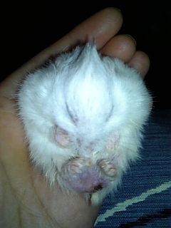 先日の危機一髪?の頃からまたもやサンに災難が降りかかっておりました。 サンの「タマタマさん」が「タマタマタマさん」になっちゃたんです(-_-;)とパパに言ったら、パパ 「日本語は通じるように話せ!」と言われました(-_-;)ので分かりやすく説明いたしますと、サンのお尻にコロコロした物ができていたんです。腫瘍かな?と不安に思っていたら、日毎に大きくなっていきまして、歩くと引きずるほどになってしまいました。引きずられるので結構大きな瘡蓋になってしまい、痛いらしく歩けなくなってしまいました。・・・どうしてサンばっかりこんな思いをしなくちゃいけないんだ~!・・・とハムの神様を呪い始めたら、掌に乗っていたサンが自分で瘡蓋を噛んで半分ほど剥がしてしまいました。するとそこから膿みがいっぱい出まして、「タマタマタマさん」は無事に元の「タマタマさん」に戻りました。少し穴があいているし、瘡蓋も半分残っているけれど、楽になったらしくサンは普通に歩きまわれるようになりました。お祝いにサンをきなこちゃんの様なモヒカンにしてあげたら、調度眠くなったらしく丸まってしまいました。・・・モヒカンと言うよりはスライムに近いかもしれない(-_-;)何かが違うぞ 瘡蓋が少し残っているけれどサンの体調はとても良かったらしく、食欲も旺盛でお散歩もいっぱいしてました。昨日の昼にまたサンに悲運が・・・。サンがよく眠っていたのでチョコに預けてちょっと饅頭なんぞを作っておりました。饅頭を作り終えお部屋へ戻ってみると、いつもは寝ている時間にもかかわらず、またもやチョコがケージをカジカジして騒いでおりました。慌ててサンを見たら、また綿が足に絡みついておりました。前回のことがあったので綿は全て、ティッシュで包んで直接サンに触らないようにしておいたのですが、とっても御機嫌だったサンかなり大暴れして遊んだらしく、3重にしたティッシュが破けて綿が散乱してました。しかも自分で綿をとろうとしたらしく、綿で足がすれてしまい、腫れあがって血が出ておりました。まるで火傷をしたかのようでした。・・・あ~、饅頭なんて作らなければよかった(:_;)・・・と晴、凹みました。・・・ものっそく凹みました(-_-)綿を何とか外し、サンの足の治療をしようと準備をしていたら、晴の目の前をテコテコテコとサンが何事もなかったかの様に歩いて行きました。腫れも出血も酷いので、もう歩けないのでは?と思っていたのですが、サンは、普通に歩いてくれました。血が出ると足を舐め、舐めた足で頭をカリカリ掻いてまた歩き出す。床についた小さな血の足跡を見て身を切られるような思いでしたが、サンの顔はサン 「ばあば、どうってことなでしゅ!すぐ治るでしゅよ!」と言っているように見えました。昨日の夜は久しぶりにサンを掌に乗せて一緒に眠りました。サンは寝ながら大好きなエゴマを食べていました。今日は三兄弟と一緒に過ごしております。サン 「おやつもおいしいし、お散歩も楽しいでしゅ!」改めて、・・・ハムの神様もう呪いませんのでこれ以上サンに意地悪をしないで下さい!・・・