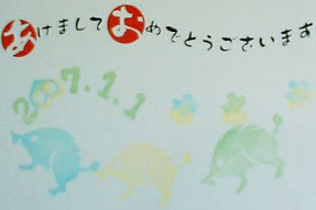 今年の年賀状は消しゴムハンコなど作ってみました。