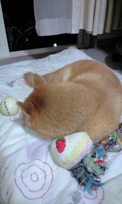 大好きなおもちゃに囲まれて安心~♪なはるです(笑)