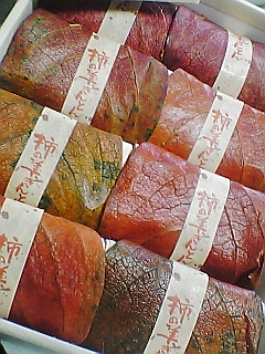 確か先週のちょうど今日、お昼のTVで紹介されていて気になってすぐ注文した「柿の美きんとん」がついさきほど届きました。ほどよい甘さの干し柿の中に栗きんとんが詰まっているのですがまず包装紙の外側に柿の葉(だと思うんだけど)がくるまってるのがすごーくキレイ今回は自宅用に8コ入りを買ったのですが誰かに贈る用とかにしても絶対いい!です。●川上屋http://kawakamiya.co.jp/catalog/