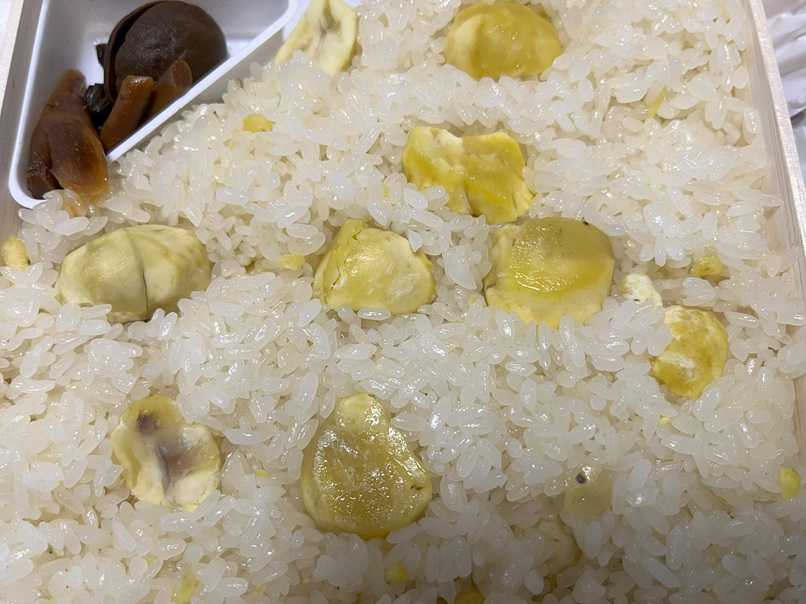 でも、もちもちとしたおこわ、上品な栗のお味、、、しかもその栗がたっぷり入っている贅沢な栗おこわは本当にごちそうだと思う。