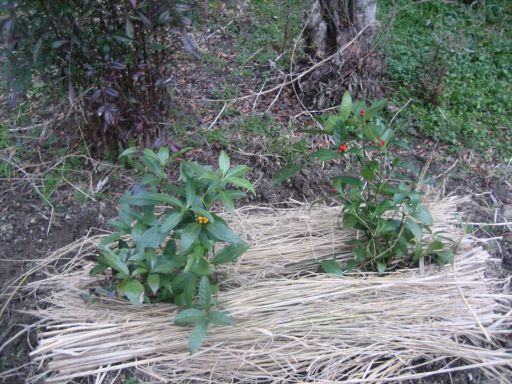 春ですねぇ。母が実家から赤い実と黄色い実のなる千両を掘ってきて我家の畑に植えてくれた。私がポーっと眺めている間に耕し、植え込み、水をやり、藁をかぶせる。80過ぎとは思えない手際のよさ!さすが!お見事私からはなかなか会いに行けなくなってから父と母は前より頻繁に我家に来てくれるようになった。30分も腰を落ち着ける事は無い二人だけれどまた、顔を見せに来てね。