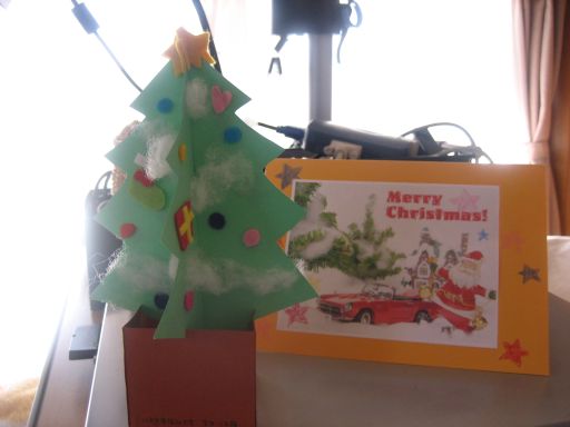 とてもステキなプレゼントをいただきました。計4回の実習の最後の日、学生さん手作りのクリスマスツリーとカード帰ってから二人で読んで、心があたたか~くなりました。主人は目にじんわり・・ありがとう頑張ってよい看護師さんになってくださいね。
