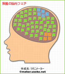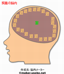 なるほど、こうなっていたのか。 優等生というのは、じつは作られたもので、 頭の中は【遊】ぶことで一杯だったのだ。 (ほとんど空洞かよ★) 真ん中にぽちょんと、【妄】執があるのが面白い^o^ いろいろと煩悩に悩む疾風なのであった(笑) そしてフェチ☆な部分… おおおお~!! 【声】ですかっ。 そして【脚】ですかっ。 (何か、相当スケベっぽい★) でも、【服】っつうのは… しかし当たってるねェェ。 なんでこんなに当たるんだろ。 |