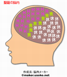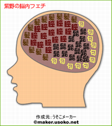 見るなり、「何これ!」って思っちゃったよ☆ そうかぁぁ、キミは前頭葉で常に【H】なことを考えてるわけかぁ。。 うしし。当たってる♪ さらに、いつもいかに【休】みを多くとるか考えてるのも、バレバレだねェェ。。 当たってるじゃん(笑) でもって、死なない程度に【食】べることもちゃんと覚えてて、 エライよっ☆(お姉さん、感激) さらにフェチ☆な部分。 【脚】で埋まってて、 真ん中に1コだけ 【尻】 って…。。。(-_-; しかし当たってるねェェ。 なんでこんなに当たるんだろ。 |