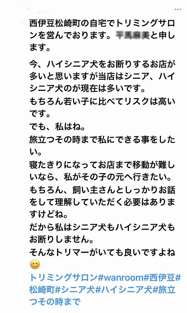 「高齢・老齢犬のシャンプーポリシー」(当ブログカテゴリー欄)