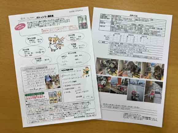 下写真は滞在中の様子をお知らせする「ホテル報告書」です