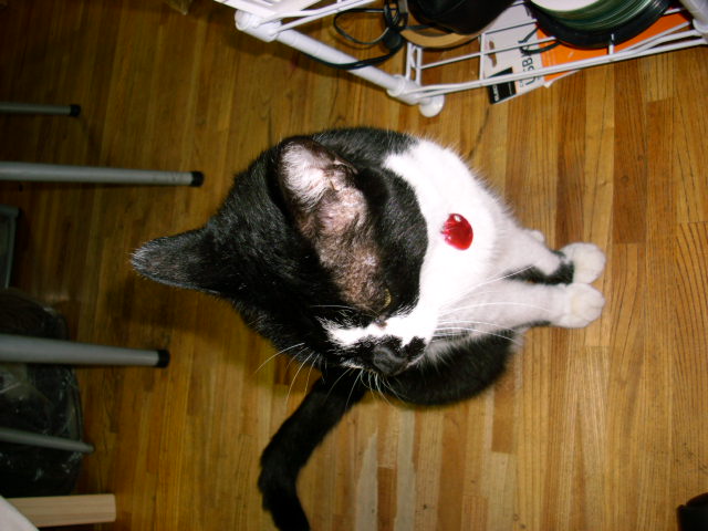 やっぱり寝ていました5時ころ起きだしてきてまつわりつき仕事のじゃまを始めました食べた後は遊びたがるしばらくして帰ってきた。もっと遊んでりゃいいのに体が小さいためセンサー感知しません早く開けてーーと鳴いてアピール
