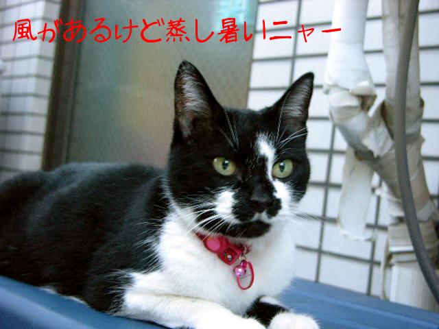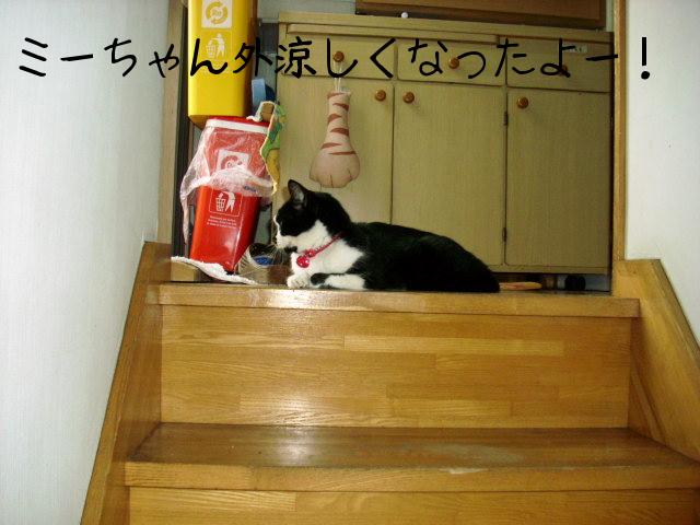 日中は暑かったせいかどこかに避難していたミーコが起きて来て散歩をちょっぴり帰ってきてすぐまた一眠り、7時前一階に下りてきて膝の上にヒョイと乗ってきてすぐ居眠りモードに突入!>>>>>>>>>>>>>>>>>>>>>>店の休憩室に来て膝に乗って来た。ニャンコは体温高いので暑い暑いおじゃま猫、横からパチリ!