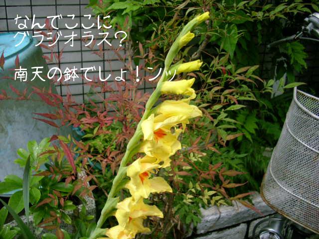 まだ一個しか出来ません、花は次々咲くけど全部雄花らしい!しし唐は簡単に実を付けます来年は2~3株植えつけよう/成長の字を間違えて変換<生長>になっています謹んで訂正致します。またまたグラジオラス!今度は<折り鶴ラン>正式名称は分かりません のプランターから開花綺麗です(一株だけど)ニャンコは昨夜大暴れの屋内運動会(一人で)疲れたらしくぐ~ッすり寝てました