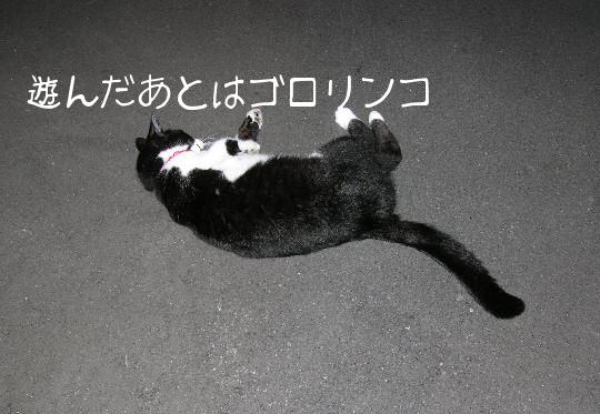 夜になってまた遊びに外に出て・・・玄関前でゴロゴロけっこう身長あるねー今日のミーちゃんの一日・完