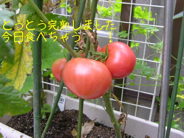 ようやくトマトが完熟!いよいよ今日収穫!ガブリっと!いっちゃいます今日また雨・小雨が降って つまらなさそうなミーちゃんです