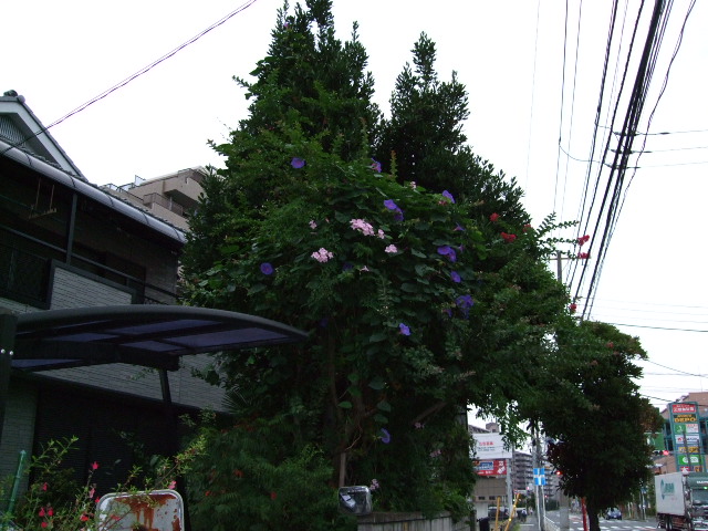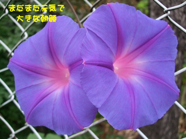 今日は青空が広がって冷たい空気の朝・ぶらりと出かけた いつもの朝顔今日は遠くから撮影 夏の頃より花は小さくなって来たが 今でも12センチくらいはあって葉も衰え知らず。ご覧のように 工場の塀に咲いてます。 今日昼過ぎ届いたずっちゃん紹介の猫の手