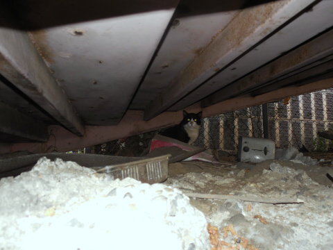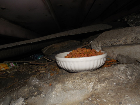 今朝も小雨交じりの中届けて江戸川まで階段に準備してる宅配用の^-^一個がギガ盛分ありますナニーママ製作のポーチにも非常用のカリカリ入れて出動準備さらに異種類のカリカリ三種混合(笑) 出発はいつも5時前AM5:00ショップ ・雨のため遠くが見えない 今日も少し残ってる 新しいのに入れ替え 江戸川は雨のため閑散としてる ワンちゃんの散歩に追い抜かれた~歩くスピードが遅くなり 「老い抜かれた」が 正解?^^にゃろっピンポ~ン正解って言ってるの~? ・雨のためここからUターン ・・ 帰りにオシロちゃんの所を覗こうとしたら反対側から^^ネコなのに脱兎のごとく逃げた 帰りにオシロ食堂を覗いたらなんと~逃げた~^^オセロちゃんじゃ無いよ あわててシャッター切ったので手前の草にピントが合ってる~どうやら食べてる途中だったようだニャロメさんちのパン君に似てるよ~^^場所の詳細どうでもいいことだけど^-^ 歩道橋の上からあとで出直して食べにくるでしょう^^今度見かけたら名前は食べに来るパン君だから食パン^^・・いい名前だ ・・・・今日も休み無しの過酷労働のです^^仕事の状態編集作業中テーブルの上のもの片付けられません\@@/^0^今日一段落付きそうなので^^片付けますハイ!しかし次の仕事がすぐ待ってます^^あ”ぁ~ねむい皆さんのところは読み逃げが続いています 今日の猫は花ネコ にほんブログ村こっちも押してね