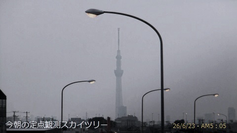 四日間で梅雨は明けたかな?今朝は5時半過ぎから急に霧が出てきて今現在(6:00)視界悪いこの写真は5:10分ころまだ3キロ先ぐらいまでは見えるスカイツリーは見えない 陸橋上から探したけど居ないね ・散歩コースをショッピンセンターにして 5:30分 少しずつ霧が濃くなってきた ハトも臨時着陸?サルスベリの木も滑らずに摑まってるよ~ハトだものね ゆりの花は犬の鼻 今日はネタなし昨夜11時までがんばったけど仕事終わらず今日も引き続きがんばらなくっちゃ~おわりじゃーね~読み逃げ常習犯です にほんブログ村