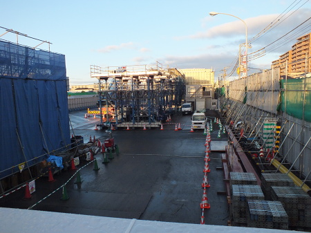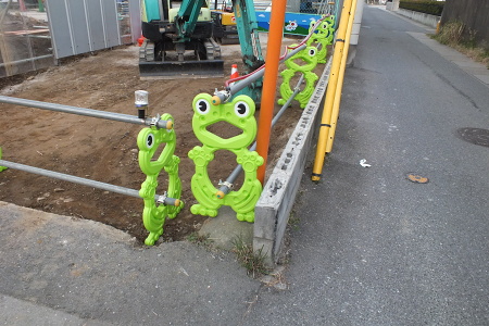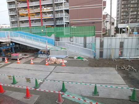 一週間ぶりに歩道橋を見に行ってきたまた進行していたかえる君も鉄棒かついでワッショイ・ワッショイと頑張ってる?後方に見える階段 新しい階段が・・・途中まで^^以上今日の出来事でした