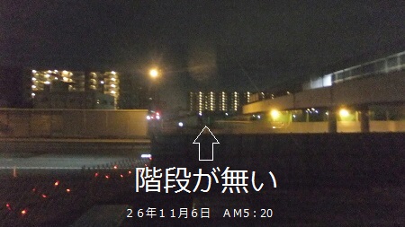 オシロちゃん物語もいよいよ最終章に近づいて来たようだ思い起こせば約1年半前の6月後半オシロちゃんファミリーに遭遇 2013年6月30日の写真左がオシロちゃん手前のニャンコは人懐こいので多分ネコ好きな人に保護されたかも オシロちゃんはいつも背を向けないのでシッポはいつも見えない^^(ゴロンとしてクニャッと曲がってた)一度だけシッポを上げてるのを見たときに^^内側の先だけが白かった^^以来 尾白=オシロちゃんの由来名 江戸川の帰りにいつも待っていた あれから1年半・・・今日の歩道橋は予想はしていたがこんなに急に 封鎖されてるところを何とかすり抜けやや残ってるがほぼ完食山盛り明日は完全封鎖されないように祈るだけニャ 左後方が昨日までの階段 帰り昇り切ると昨日まで上り下りしていた階段この下にオシロ食堂が明日はどうなる外ネコちゃんの運命はまた変化があったら更新します