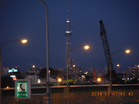 今朝も外ネコ探しの早朝散歩で見たものは?なんと!西の空に不気味な色してスカイツリー の左に 歩道橋上はゆれてるので撮りづらい絞りを絞って肉眼と同じ明るさで撮影 撤去されて空き地になった元階段のあった所明るく撮影しています^^実際はまだ暗い 新しい橋桁かな? 中央に細かくカットされた階段が横たわってた 元階段の上り下り口 帰り^^この時間になるとだいぶ明るくなってきた月がどんどん下のほうに下がって来たかなり大きな月だよ\O/を狙ったがカメラが左に行けない(柱で見えない)結構速いスピードで下に落ちて行く月下に雲があるようだ下が欠けてきたよ~^^・・・パラシュートのような月 (このような赤い月でした)今日は猫は居なかったおわりまたネタがあったら更新します皆さんの所は足跡付けに行きますね