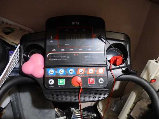 ランニングマシーンの目の前にモニターを設置(目の高さにね)