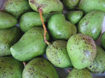 熟す前に地上にやってきたマンゴーたち甘酸っぱいみどりいろのかおりを漂わせシャキシャキサラダとなっておなかの中へ旅立ちました美味しかった作:林尚