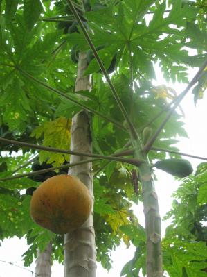 パパイヤの木に実がなりました熟して落ちてくるまで一眠り目覚めたわたしにご馳走様と小鳥がお礼を言いました今度は待っていないで取りに行きます作:林尚