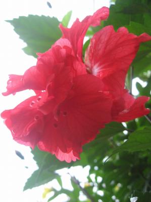 灰色の空が続く心までどんより雨の音に誘われ外へ出たそこには先客赤い花が雨を浴びながら泣いていたたまにはこういう日があってもいい作:林尚