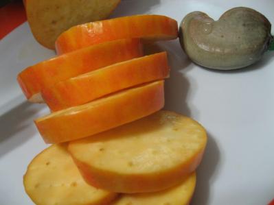 やわらかいマシュマロを切るような感覚で包丁を入れる中はみずみずしいと言うよりもなんだかチーズのようでそれでも一切れ口に入れると甘くすっぱい味が広がったおいしいのかおいしくないのか・・・うーんどうだろういつまでも口のなかに残ってなかなか飲み込めずにいる口の中で果汁だけを楽しむものなのかなあ写真だけでなくて香りと味が伝えられたら良いのにはじめて食べたマラニョンは不思議な味でした作:林尚