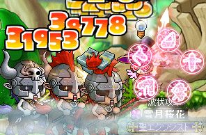 ジャクム突撃は本日23時予定、22時に官邸前集合願います。来てね!波状です。恒例ビシャス道場で弩がレベルアップ、125。ようやく必中になりました。そしてピオシング20が成功していないのでSPが余ってしまうという…うぐぐ。Heroはゾンビママシュ44匹をついに撃破したので次のステップに進行することになりました。まずはクマーから除霊。しかしここ立ち回り難しいなぁ。途中レベルアップ!Lv164!当然インレイジに投入。目標まであと6か…遠いね。そんなわけで退魔師まで獲得しまして、次なる目標はもちろん最高位である聖エクソシスト。除霊対象は…コイツである。つまり聖エクソシストを受けるにはそんなにレベルはいらないけど自力で取るには150くらいレベルがいるわけで。なんだこのクソ仕様。前回来た時に比べ火力が大幅にうpしているおかげかサクサク狩れます。骨龍2種、ファントムウォッチ2種、ボーンクラピをそれぞれ444匹物理的手段で除霊し、獲得!聖(セイント)☆エクソシストッ!!うーん、素晴らしい。両端の十字の意匠といい紫地に白字といい非の打ちどころのないデザインだ。惜しまれるのは持ってる人が結構多いことくらいか。一仕事終えてフリマをぶらついていると砕骨がえらい安いことを知る。その中には結構ナウい性能のものもありもしかすると僕のニブルに迫るんじゃね?とも考えさせられる。ので、500m出して購入した。素のATK128のうえにエピOP3で500mですよ?激烈に安くないですか?どのみち装備強化なんて貼る度胸ないので☆の数は問題になりません。ビシャハンとか買わないし。これで立場を奪われた我がニブルヘイム、当然装備強化書でさらなる高みを目指すほかない。というわけで躊躇いもなく発射、ウオオオオーーーーーーッ!!!さらばニブルヘイム、お前もまた愛刀(とも)だった!!最終成績はATK130でした。黄字を見られただけでも満足です。とりあえず残った砕骨に余ったPでキューブ1回まわしてクリティカル8%、MP100、スタンLv2を付加。微妙だのう…最後にエヴァンが未だにHeroIDの中でLv70になっておらず恥晒し状態になっているのでレベル上げ。MC2とイリオスで一気にLv56になりました。ドラゴンスラストマダー?今回のドロップ書は短剣10%、銃10%