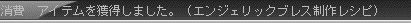 DKが4次したということでHeroをまともに動かすことにしました。波状です。それにあたって消えたまま長らく放置されていたアバも新調。これで準備万端。そんなわけで話題の狩場マスターデスマリオにホイホイきちゃったのだ。狙うはもちろんエンジェリックブレスレシピ。少なくとも全4次キャラに配備したいナイスな性能ですがもちろん7個買う金があるわけないので自前調達です。2分でゴールドベルトレシピが出たりお茶くんでる間に死んだりという今世紀最大級の屈辱を乗り越え…20分程で1個目獲得ッ!(アイテム名が画面外に行っちゃいました)だが1個では当然物足りないわけであって。まだまだ行くぜ!オレのターン!ドロー!追加攻撃!追加攻撃!その結果2時間弱の狩りでレシピ3枚獲得。素晴らしい戦果だすばらしい。熟練度を無駄にしたくないので2個作成、うち1個はINT2LUK2。こいつは火毒にまわしてやるとしましょう。実際につけてみた。常に出たままというのは少々アレですがなかなかよいですな。鬱陶しければ外せばいいだけだし。そして鎖位アランが4次したので何故かジャクムの流れに。人数少ないので結構ヤバイかなーと思いましたが案外なんとかなるもんですね。1戦目でコンボバリアを獲得、2戦目でブロー、テンペスト、ディフェンスなど一通り出ましたがいつの間にか鎖位本人がジャクムに突撃して中央で死んでいたため消滅。ホントアレなんだったんだろう。ステップ暴発でもあんなんなるのかな?アランでのジャクム経験豊富な方、情報くださいませ。今回のドロップ+エンジェリックレシピ1枚