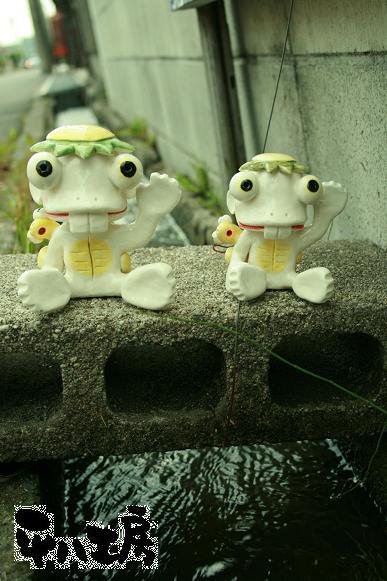 カッパさんです。カッパ(河童)というと、昔話で川に人や馬を引きずり込んだという怖い妖怪なのですが、今は解釈を変えて幸福やお金、お客さんを引っ張り込むとして縁起物なんですよ^^平八のカッパさんは、甲羅の変わりに亀がしがみついています。亀は長寿と子孫繁栄なので平八の中で一番縁起物が詰まっています。はぁ~い、カッパで~す今日も暑いですね~頭のお皿も乾いちゃいそうですかめさんも、暑くって大変みたいだよカッパさんからの一言:暑いと水の事故が多いから気をつけてね川はいきなり深くなったり、流れがきつくなったりするから気をつけようね海は離岸流に流されたら海岸と平行に泳いで流れから脱出しようね亀さんからの一言:亀に乗っても竜宮城にはいけないから乗らないようにね↓ご協力お願いいたします!↓人気blogランキングへ※お知らせ5月18日に「エビちゃん」をお嫁さんにもらって頂いたお客様、お伝えしたい事があります。ご連絡お待ちしております。●○●○●○●○●○出店情報○●○●○●○●○●開催中 2008年7月25日(金)・26日(土)・27日(日) 大曽根七夕まつり「クラフト&アート市」 AM10:00~PM8:00(雨天決行) 会場:愛知県名古屋市北区大曽根商店街 2008年8月7日~10日 京都・五条坂陶器まつり 会場:京都府京都市・五条坂 http://www.toukimaturi.gr.jp/ 2008年9月20・21日(土・日) 駒ヶ根もみじクラフト 20日(土)10:00~17:00 ・ 21日(日)9:00~17:00 入場無料・屋外開催・雨天決行 会場:長野県駒ヶ根市・菅の大特設会場 主催:駒ヶ根もみじクラフト事務局 http://www.cek.ne.jp/~miya-ken/kurafuto.htm 後援:駒ヶ根市・駒ヶ根市教育委員会・駒ヶ根市商工会議所 ・駒ヶ根高原農産物販売所ホームページ作りました。ネットショップはこちらから行けま~すリンクフリーです。p-netbanking