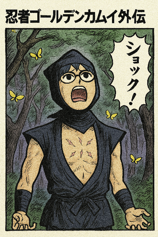「上のイラストはねぇ。北斗の拳のケンシロウのように胸に7つの傷を持った忍者というモチーフの予定だったんだけど⋯」