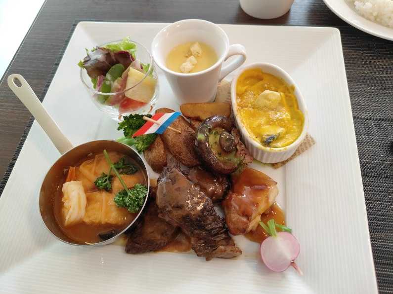 北海道産牛のステーキ、鶏肉の照焼、鰈と海老のブイヤベース仕立て、カボチャと栗のグラタン等「今日は中華ではなくビュッフェをやっているレストランで『ご褒美ランチプレート』を食してきたよ」「スポーツの日に運動をしないご褒美ですね?」「先週の投資下落による失意のご褒美かもしれないですぅ」「今年も残り二ヶ月まで生き延びたご褒美も兼ねているかもしれませんね」「なにはともあれ食べることが出来るというご褒美ですね、とゴウライは推察します」「大過なく10ヶ月が過ぎたものねぇ」ヨーグルトのソルベ。飲み物はドリンクバーでお得「明日から怒涛波乱の幕開けかもしれないけどね」「政局やら関税摩擦とかによる投資に未透視が出来ないということですね」「13面待ちか9面待ちの役満振込警戒ですね、とゴウライはマスターの心境がツカンポであることを察します」「まぁ警戒してもどうしようもないですけどね」「流れに身を任せるしか無いのですぅ」「思い切ってリーチで自分を追い込むのはどうかしらぁ?」「いやぁ、ストレスで太っちゃいそうだね。昨日の昼はハンバーグを2つも食べて少し脂肪がついたしね」「散歩に行って買って帰ってきましたからねぇ」「あれば食べてしまうのですぅ」「セルフオーダーだったので躊躇なく注文したと言っていましたね」「店側の罠にまんまとかかったわけですね、とゴウライは溜息を付きます」「ポテトを買わなかっただけましよねぇ」「セットという考えがなかったからね。来年のNISA枠ではマックとか王将の株でも買おうかな」「優待による食事券狙いですね」「含み益じゃなくお腹周りの脂肪が増えそうですねぇ」「鬱々ですぅ」