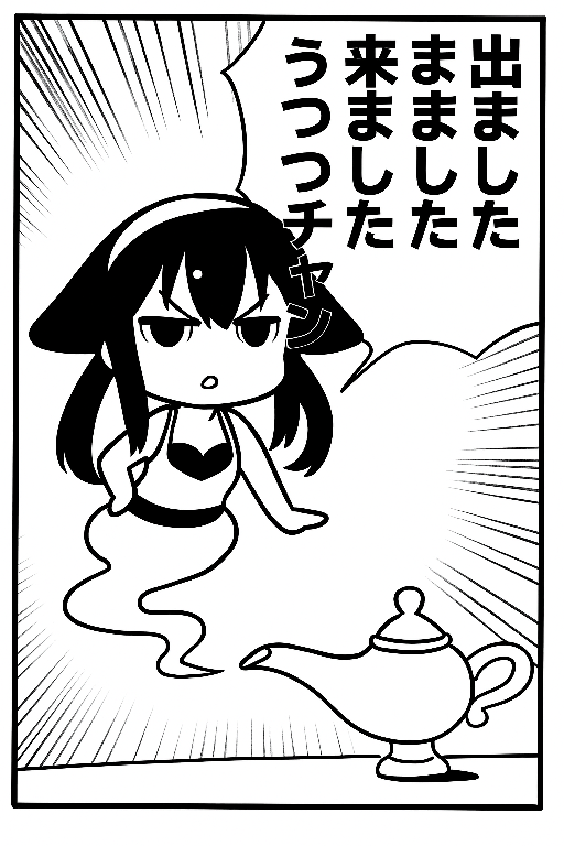 うつつちゃんのアイコン画像を元に魔法の壺から飛び出てきて吹き出しに「出ました来ましたうつつチャン」と入れたマンガ風イラストをお願いしたのだが、なぜか吹き出しに「まました」というナゾの文言が入り、壺指定も勧誘違反なのか気を回したのか魔法のランプになった次第。「寄せては返す鬱の波、また波。そして百億の雨と千億の曇天時に襲い来る鬱々も然り⋯とナレーションを入れるのは置いといて、『うつつ日記』を最初に始めたきっかけが精神崩壊を防ぐためだったなぁと回顧に浸る」「それで先程のイラストになるわけですね」「そうそう第一回目の『うつつ日記』で壺からでてきたうつつちゃんのイラストを使ったなぁと思いAIコナン君に再現して貰ったんだけど⋯」「残念な結果なのですぅ」「そして一回目の日記を読み返してキャラ崩壊にも気づいたんだよね。うつつちゃんはもっとストイックで『かわいい魔女ジニー』とはちょっと違ったクール系だった気がするんだよね」「『轟雷日誌』との合併で変わってしまったのではないでしょうか?」「過去日記編リンクは張っていませんので閲覧数稼ぎではありません、とゴウライは言ってのけます」「ネンドロイドうつつちゃんになってからという訳ではないわよねぇ」「幼女化という訳でもないですしね」「ちなみに『幼女戦記』風のうつつちゃんはこちら」幼女戦記風の制服姿で演壇に立つイラストを指示「戦士諸君、決戦の時間だ。なのですぅ」「これはなかなかの出来なのです。ここまで来たら僕達のように忍者姿を見たいですね」「不公平がないようにお願いねぇ」科学忍者隊ガッチャマンの白鳥じゅんがヨーヨーを投げている感じのシーンを依頼「ヨーヨーで遊んでいるシーンですね」「問題はそこではないのです、とゴウライはマスターをジト目で注視します」「『スケバン刑事』がヨーヨーを投げているシーンと指示すればよかったかなぁ」「そこじゃない感満載ですね」「野村萬斎かな?」「すでに精神崩壊が始まっているのですぅ?」百億の昼と千億の夜 (ハヤカワ文庫JA) [ 光瀬 龍 ]ハクション大魔王2020 Blu-ray Disc BOX【完全生産限定版】【Blu-ray】 [ 山寺宏一 ]新品北米版DVD!【かわいい魔女ジニー:コンプリートシリーズ】 I Dream of Jeannie: The Complete Series!【中古】 ガッチャマンクラウズ アニメーションノート/オトメディア編集部【編】【中古】幼女戦記 <1−14巻セット> / カルロ・ゼン(ライトノベルセット)科学忍者隊ガッチャマン ソングコレクション/TVサントラ[CD]【返品種別A】スケバン刑事 THE MOVIE【Blu-ray】 [ 浅香唯 ]