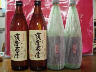 カンゴシナPRESENTS2008年 1月購入焼酎一覧!! 薩摩茶屋900ml ×2本田倉720ml ×2本赤霧島900ml ×2本深海うなぎ(赤)1800ml富乃宝山1800ml渚の篤姫御前720ml ×2本きろく無濾過・無調整 冬季限定新酒720mlの馬25° 1800ml 黒さつま900ml鷲尾1800mlもちろん、全て定価で購入してるのですが、なんと13本合計で、\20,000超! お前買い過ぎ!!(。-ω-)θ☆(ノ・Å・)ノBYママン今月は飛ばし過ぎたので、来月はおとなしくしてます。来月は緊縮財政・・・ ←ポチッとしてくれると喜びます!じつは内緒で、しゅう君さんが紹介している、ブルーボトルも買っちゃった今の気持ちを表現したく、画像使用いたしました。 問題のある場合は削除しますので、お手数ですがコメント下さるようお願いします。