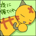 昨夜もとら太はなかなか寝つかずに 電灯も消して真っ暗な部屋の中をうろうろと歩き回り その度に布団へ連れ戻されるということをくり返していました。 いちいち付き合っていた母もいい加減眠くなってくると、 しばらく横たわったままじっとして おっ寝たかなーと油断させた頃に そろそろと活動を再開するという寝たふり作戦を 敢行するように… ええい、小賢しいー!