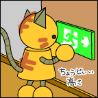 児童館に行ってきました。 初めての場所でぽんと放してみたらしゅっと飛んでいったとら太… 怖いものなしのようです。 暑いためかすごい人出の中をてこてこ てこてこ歩いて 最初に興味を示したのは『非常口→』の看板でした。 おもちゃいっぱいあるのにー