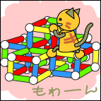 おさがりのジャングルジムをもらいました。 説明書は既に失われ、そこに在るパーツから 形を推測し組み立てるという作業を 汗をかきかきやっていると 手元にもぐり込んでくるとら太… 危ないって。 数時間かけてなんとか出来上がった頃には 寝てるし、とら。 まーどうせアクティブな遊びはしないんだろーけど。 早く起きないかなー