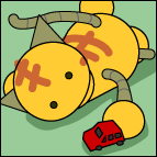 どうやら彼はかなりのマイペースさんのようです… 児童館へ行くと、わーっと広いスペースをかけ回る子や ちょこんとお座りしておもちゃで遊んでいる子たちの真ん中で いつも家でしてるのと同じように ごろーんとうつぶせに寝転がってミニカーを走らせてます、とら太。 のばした足がヨソのお母さんにあたってますよ、あぁ…… 熟睡中の父も起こすそのキックは危険だ!
