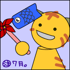 むこうを向いてひとりで遊んでいるとら太の後ろ姿を 少し離れたところから眺めてみました。 手にしているのはこいのぼり。 といっても中にお菓子が入っていた小さなもので ストローのさきにセロハンの赤い風車がついています。 くるくる回ってきらきら光るので楽しそうです。 それをいつものようにぶんぶんふりまわしていると 風車と鯉がすぽーんと抜けて飛んでいってしまいました。 手に残るただのストローをみて呆然とするとら太…… 横顔があんまり可笑しくてぷっと吹き出してしまい 見てることに気づかれました。 飛んでっちゃったねえ。 きまりが悪そうにストローをそっと置いてます。 ずっと見てたよー 近寄って、取れたものを元に戻して返すと 嬉しそうににこーっと笑ってまたぶんぶんふり始めました。 ……そしてまた飛んでいったわけです。