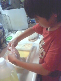 昨日のドラマ「リバウンド」を見て私も子供もとんかつを食べたくなったので夕飯はとんかつに決まり!二男と三男もとんかつ作りに参加しましたちなみに写真は三男です。「小麦粉→玉子→パン粉だよね~」「これがやりたかったんだよね~サクサク」美味しいとんかつが出来上がりました別館です→ “マロンマロン”の楽天市場でお買い物別館犬雑貨 | こどものおもちゃ | 犬服・ペット用品 | ガーデニング用品 | ジュエリー健康・ダイエット | 全国スイーツ | 早見ランキング表