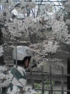 毎日のように桜ネタですが・・・。今日、幼稚園から帰ってきたら、お隣のTくんがいて、それまでオネムだったのに、すっかり目が覚めてしまって遊ぶ気マンマンのちゅんTくんも「もうすぐ家庭訪問だから、それまでなら遊べるよ」って言うから、すっかりその気で着替えてから出てみると・・・タイミング悪く、Tくんの先生がお見えになってしまったみたいで、Tくん、すでに家の中に入ってしまっていました・・・シューーー・・・と落ち込むちゅん(´・ω・`)ショボーン*そこで、あまりに可哀想だったので、「公園に自転車で行って、お花見しながら何か食べよっか??」って聞いてみると、「うんっ!!」と良いお返事・・・さすが、食べ物には弱いのね(笑)*そこでチャリチャリ・・・と、公園へ行ってみると・・・もう、ほぼ満開!!!9分咲きっていう感じでしょうか??その代わり、しだれ桜が微妙に満開すぎちゃった感じですが。。咲き乱れる桜に、大興奮のちゅん。そして、その後はやっぱり・・・というわけで、2人でおでんを食べました。おでんって、てっきりコンニャクだけかと思ってたら、しっかり普通のおでんだし・・・(笑)でも、ちゅんは美味しかったのか、お代わりして2皿食べましたそして、腹ごしらえをしてから公園で遊んで・・・帰りました。*その帰り道のこと。チャリをこいでいて、ちゅんに「この自転車って、お名前ないの??」といわれて、「うん、ないよ~」と答えたら、「それじゃ、ちゅんが付けてあげる!ボロボロンはどう?」・・・と。「可愛い名前じゃ~ん。なんでボロボロンなの??」と聞いてみたら、「ボロだから」・・・あはは・・・やっぱ、そうだよねぇ~確かに、あたしのチャリ。もう雨ざらしにされて、すでに8年・・・。よく働いてくれましたが、しょっちゅう”キィ~~~ッッ”っていう変な音が、こぐ度にしたりして・・・寿命かもな~という感じなんです。でも、もう幼稚園への送り迎えも1年過ぎたし。あと2年かと思うと、新しいのを買うのも勿体無くて・・・。ちゅんを乗せなくて良くなったら、もう少し可愛いようなチャリが欲しいなぁ~と思ったりしているので・・・でも、子供の目にもボロに見えてたのかと思うと・・・チャリが可哀想なような、面白いような。。。