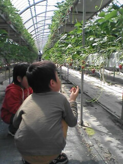 今日は幼稚園のお友達Sくんと、そのお姉ちゃん達と、イチゴ狩りに行って来ましたなんだか、春休みっぽいでしょ??(笑)*車で1時間くらいの所にある、熱帯植物園なども併設されている施設へ・・・。もっと近場にもイチゴ狩り出来るところはあるのですが、お互いに、そこには行った事が無いということで、そこに決定~~~イチゴ狩りなんて、久しぶり!!前回は、まだちゅんの分のお金がかからない頃でした。ということは、3歳前だから・・・3年近く前??今気づいたけど、随分久しぶりだったんだ。。。イチゴは大好きだけど、こういう機会でもないと、なかなかイチゴ狩りに行こう!って話にはならないよねー。*ハウスに入ると、暑いくらい!早速子供たちは、上着を脱いで・・・ちゅんは最後には下着のTシャツ1枚になってました(笑)やっぱり取りたてのイチゴは美味しいあたしも、元を取るべく・・・モリモリ食べました*そして、帰りに近くの公園に寄って子供たちを放牧し・・・(笑)1時間くらいたっぷり遊ばせて、お昼ご飯。ご飯を食べたら、新しく完成したSくん家に遊びに行かせてもらいましたお家を建ててる間は、何回か見に行かせてもらったり、完成した時も、夜だったので真っ暗でしたが中を見せてもらったりしていましたが、生活をはじめてからは初めて!とても工夫して建てられていて、良いな~って感じでしたやっぱり綺麗なお家は良いね~ウチも、なんだかんだもうすぐ2年だもんね。せっせと掃除して、綺麗に保たないと・・・と言ってるそばから、今日もガスレンジで、ふきこぼしちゃったりして・・・ため息ですが(笑)